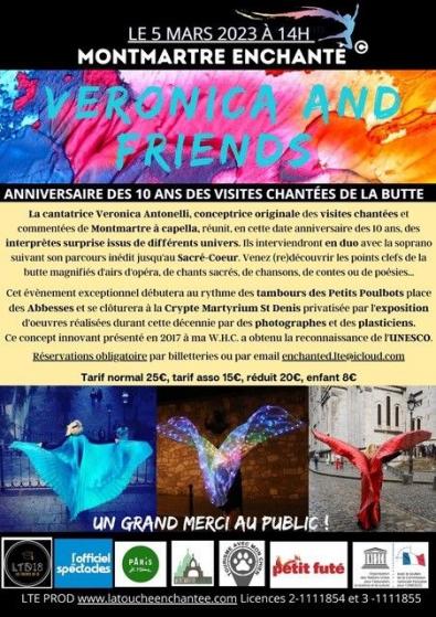 Le 5 mars 2023, la cantatrice du Sacré-Cœur Veronica Antonelli célèbre avec son public les 10 ans de visites chantées "Montmartre Enchanté » avec un spécial « Veronica and friends ».